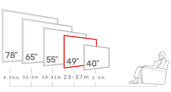 Ngoài diện tích phòng, khoảng cách từ ghế ngồi đến tivi cũng rất quan trọng. Nguyên tắc chung là khoảng cách xem tivi nên gấp 1,5 – 3 lần chiều cao màn hình để mắt bạn được thoải mái và bảo vệ thị lực lâu dài.
