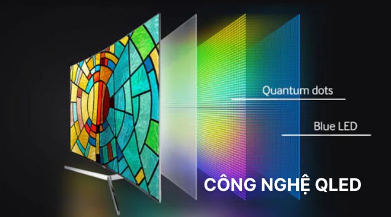 Khác với OLED – nơi mỗi điểm ảnh tự phát sáng, QLED vẫn sử dụng đèn nền LED truyền thống. Tuy nhiên, điểm đặc biệt nằm ở lớp Quantum Dot (chấm lượng tử), giúp nâng cao khả năng hiển thị màu sắc và độ sáng vượt trội so với LED thông thường.