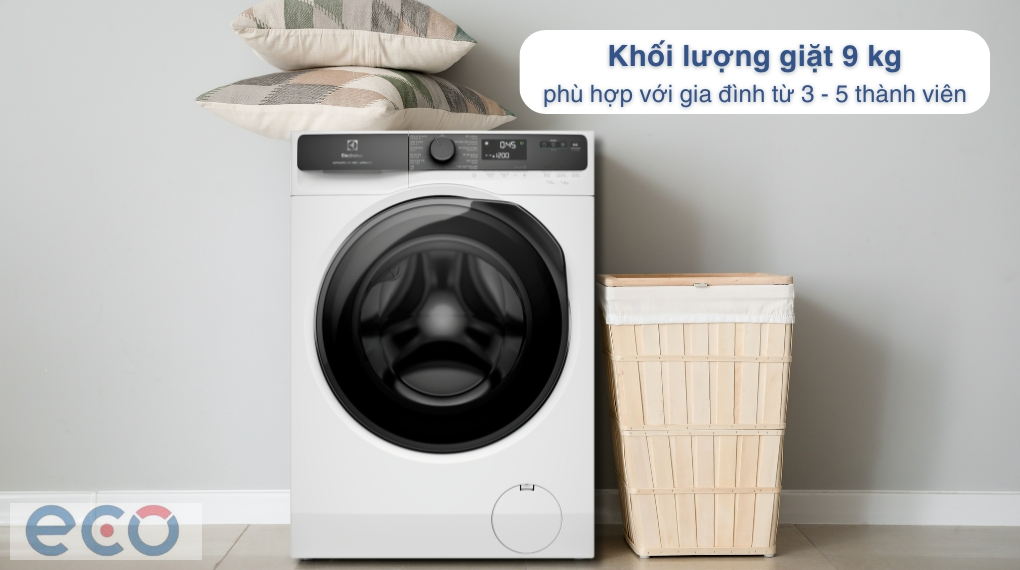 Máy giặt Electrolux UltimateCare 500 Inverter 9 kg EWF9023P5WC với kiểu dáng cửa trước, lồng giặt ngang, thích hợp cho gia đình từ 3 - 5 người sử dụng. Máy giặt này được trang bị công nghệ Hygienic Care giúp diệt khuẩn và bảo vệ làn da nhạy cảm, đồng thời có công nghệ EcoInverter tiết kiệm điện năng hiệu quả. Với đa dạng chương trình giặt, từ giặt nhanh đến giặt diệt khuẩn, cùng với tính năng tiện ích như hẹn giờ giặt kết thúc và khóa trẻ em, máy giặt này mang lại sự tiện lợi tối đa cho người sử dụng.