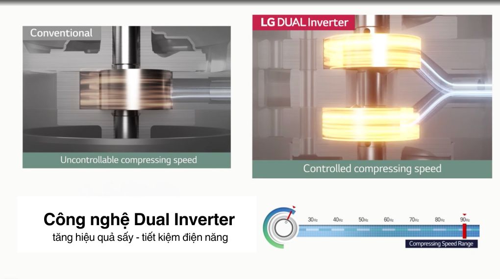 Động cơ êm ái kết hợp với công nghệ Dual Inverter tiết kiệm điện năng