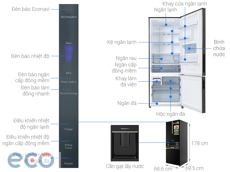 Cảm biến Econavi thông minh có khả năng nhận diện thói quen sử dụng của người dùng, nhiệt độ môi trường bên trong và bên ngoài tủ để tự động điều chỉnh công suất làm lạnh phù hợp. Nhờ đó, tủ lạnh có thể tiết kiệm đáng kể điện năng mà vẫn đảm bảo khả năng bảo quản thực phẩm tối ưu.