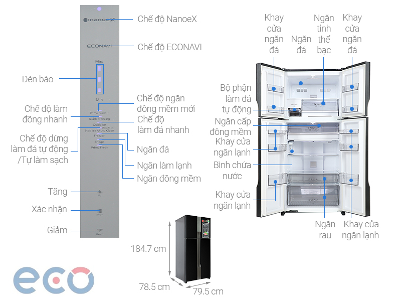 Multi Control: Kiểm soát chính xác nhiệt độ từng ngăn, tránh hao phí điện năng không cần thiết.