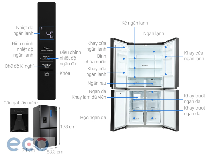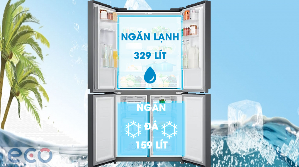 Với tổng dung tích lên đến 488 lít, tủ lạnh này đáp ứng nhu cầu bảo quản thực phẩm của các gia đình có từ 4 - 5 thành viên. Trong đó: