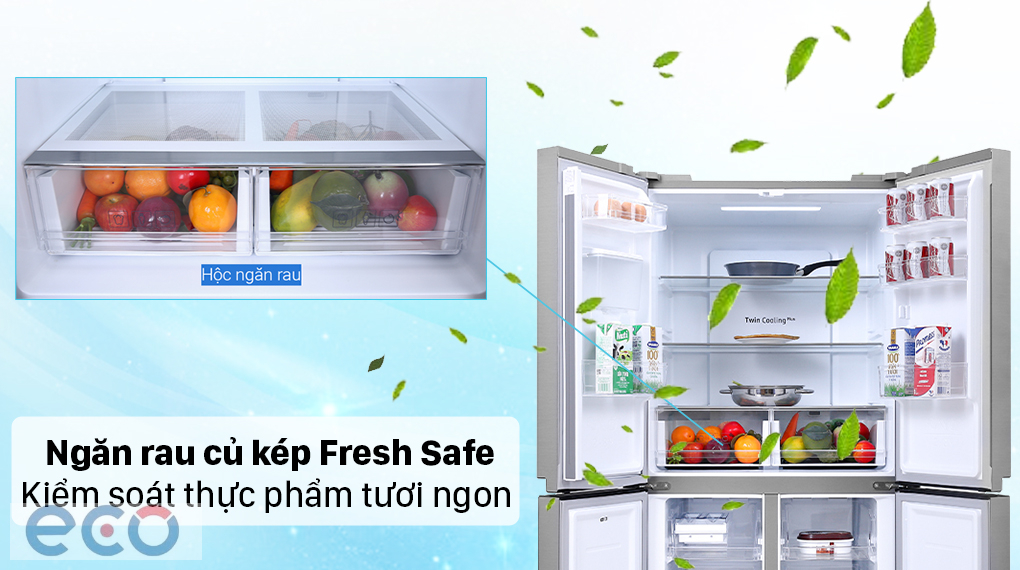 Twin Cooling Plus™: Hệ thống 2 dàn lạnh độc lập giúp duy trì độ ẩm tối ưu, tránh lẫn mùi giữa ngăn đông và ngăn mát.