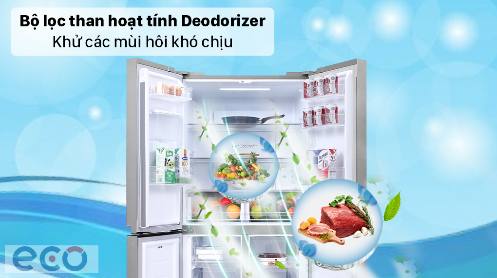 Bộ lọc than hoạt tính giúp loại bỏ mùi hôi khó chịu, giữ cho không khí bên trong tủ luôn sạch sẽ và trong lành, giúp thực phẩm không bị ám mùi, đồng thời ngăn chặn vi khuẩn phát triển, bảo vệ sức khỏe gia đình.