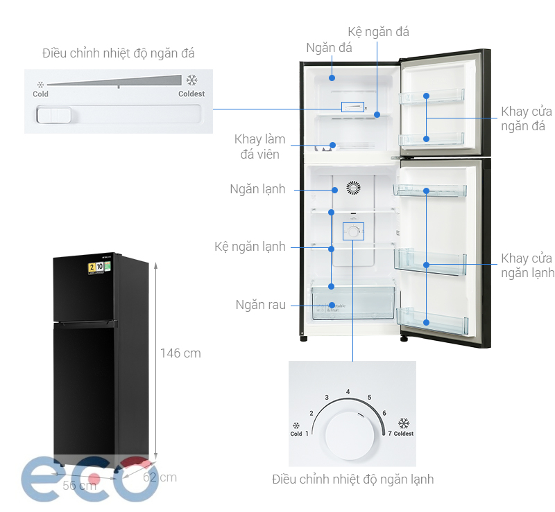 Dung tích sử dụng210 lít - Phù hợp 2 - 3 người